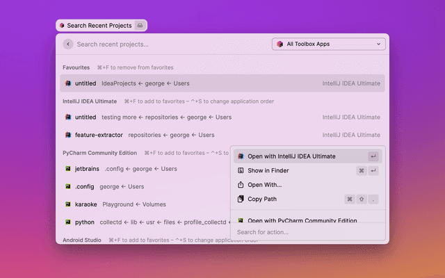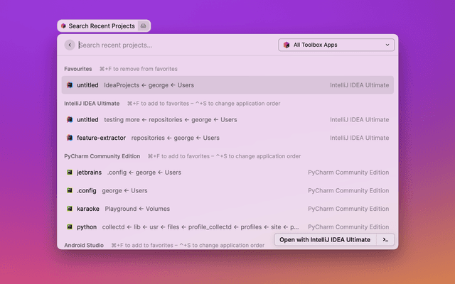 JetBrains Toolbox Recent Projects