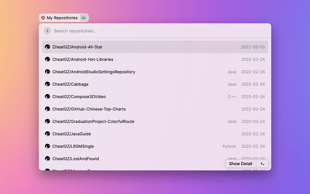 Work with issues, pull requests, manage workflows, search repositories and stay on top of notifications.